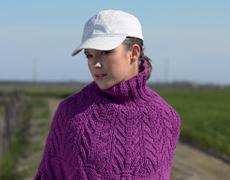 Красиво виолетово пончо с трапецовидна форма и поло яка. Отстрани има отвори за ръцете, а различните плетки го правят задължителна дреха за нашия пролетен гардероб.