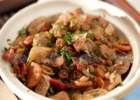 Продукти: • 300 г дробчета със сърчица • 300 г воденички • 1,5 ч.ч. ориз • 1 връзка зелен лук (1 глава стар лук или 1 стрък праз) • 2 яйца • 3-4 с.л. олио • 1-2 с.л. брашно • 1/2...