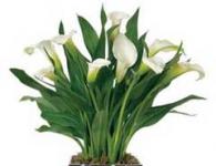 При покупката на клубените не се доверявайте на цвета върху рекламната фотография. Обикновено дори при най-добри условия не можем да получим този наситен жълт или розов цвят от картинката. Освен това след опрашването околоцветникът задължетелно придобива зелен цвят. Но не се огорчавайте – различните оттенъци на зеленото между листата и прицветника създават приятна хармония за очите. Листата също са много декоративни. Те са на дълги дръжки, стреловидни, а при много сортове са покрити със сребристо-бели или розови полупрозрачни петна. Клубенът непременно трябва да е твърд и да се виждат живите растежни пъпки. До края на март е крайното време да го засадите, а междувременно може да го запазите в отделението за зеленчуци на хладилника. Почвата трябва да е тежка и богата на хранителни вещества. Саксията трябва да е голяма, в противен случай калата може и да не цъфне. Клубенът се засажда на 10 см дълбочина. Почвата се намокря добре и съдът се поставя в подложка, в която постоянно трябва да има 3-5 см вода. Появят ли се листата, трябва редовно да се пулверизират. Тогава започва и подхранването. В началото се дават азотни торове, а след като цъфне – фосфорни и калиеви. Растението изисква силно слънчево огряване. След като прецъфти, поливането рязко се намалява. Листата трябва постепенно да увехнат. Тогава клубенът се изважда, почиства се от листата и пръстта и се прибира в хладилника, като се покрива със сух торф или пясък.